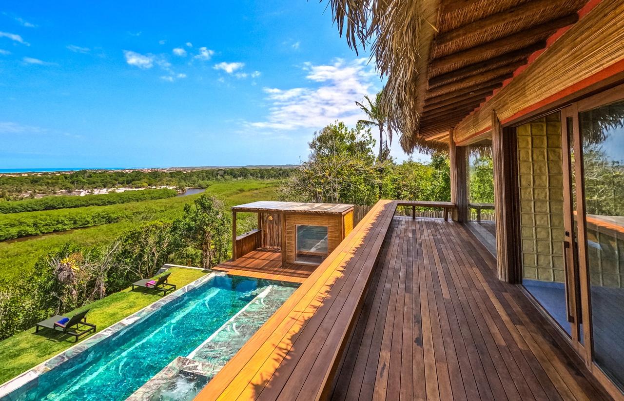 Piscina privativa, suítes espaçosas com vista, espaço gourmet, sala de estar com ventilação natural e décor inspirado na Bahia.