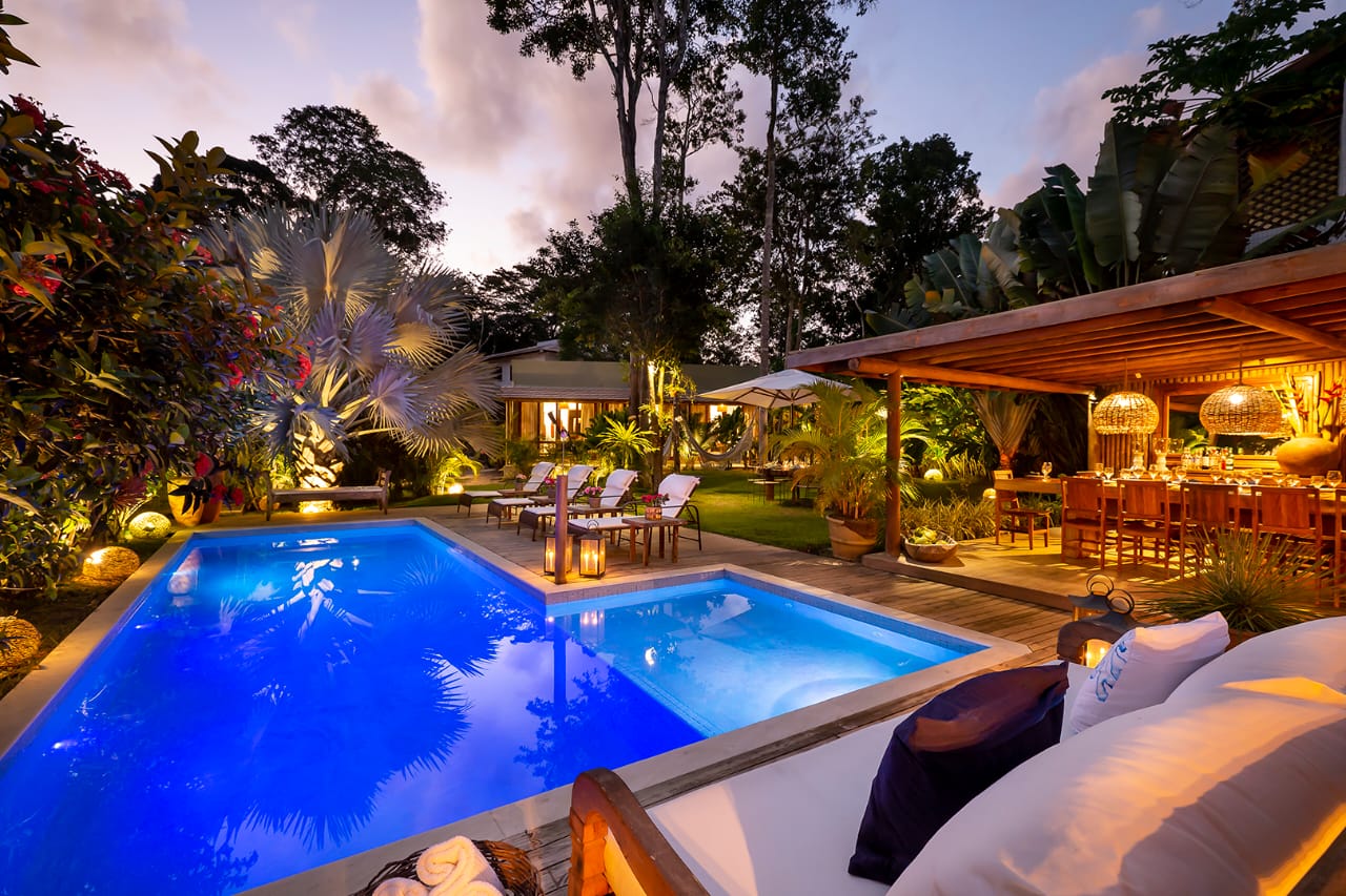 Localizada em um condomínio fechado à 10 min das principais praias de Trancoso, a Casa 13 oferece um refúgio exclusivo e luxuoso com 700m² de área total, sendo 397m² de construção. Este espaço é ideal para quem busca conforto, privacidade e uma estadia inesquecível na charmosa Trancoso.